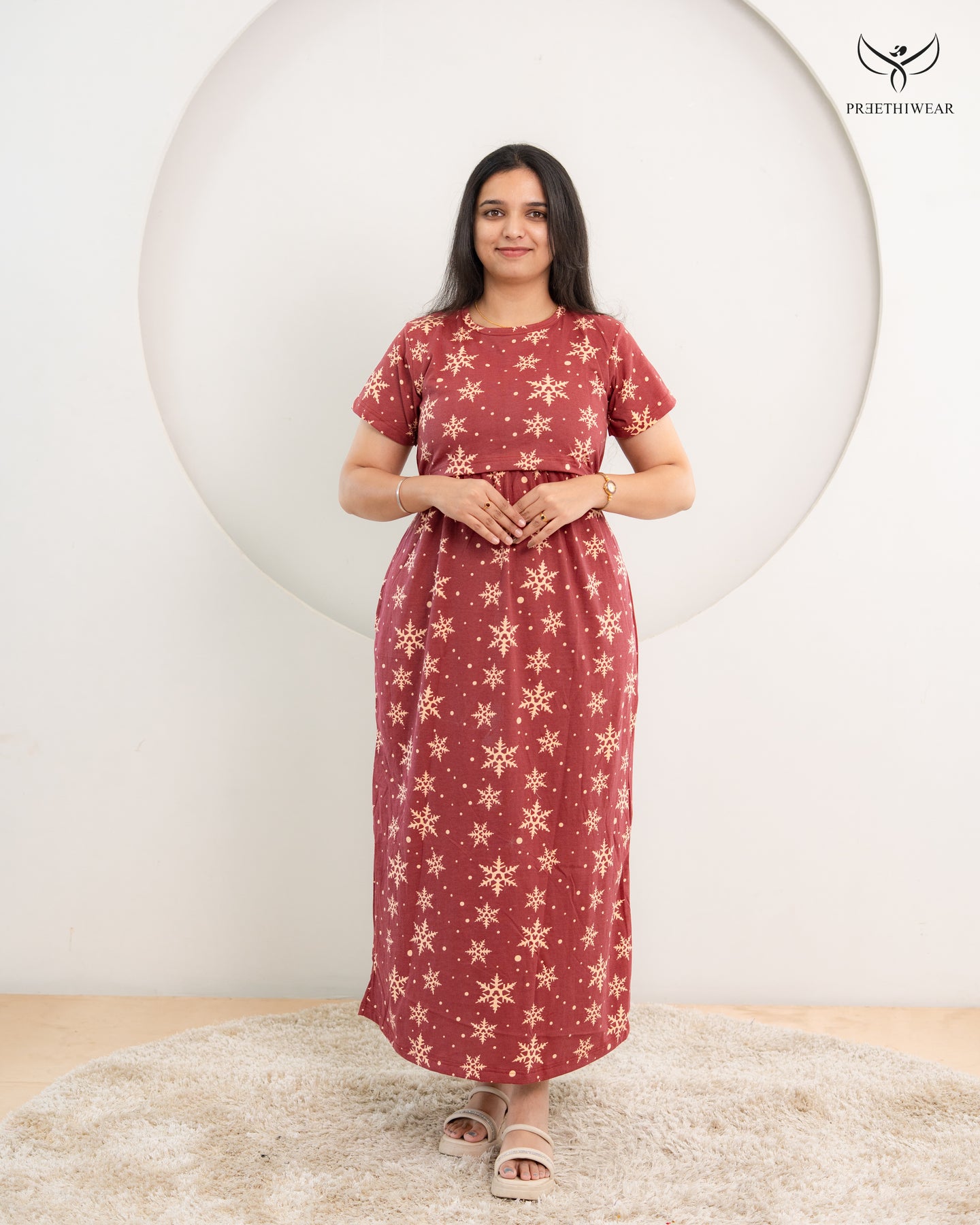 Purpose : Maternity, Night Dress , Sleepwear - Loungewear - Home wear